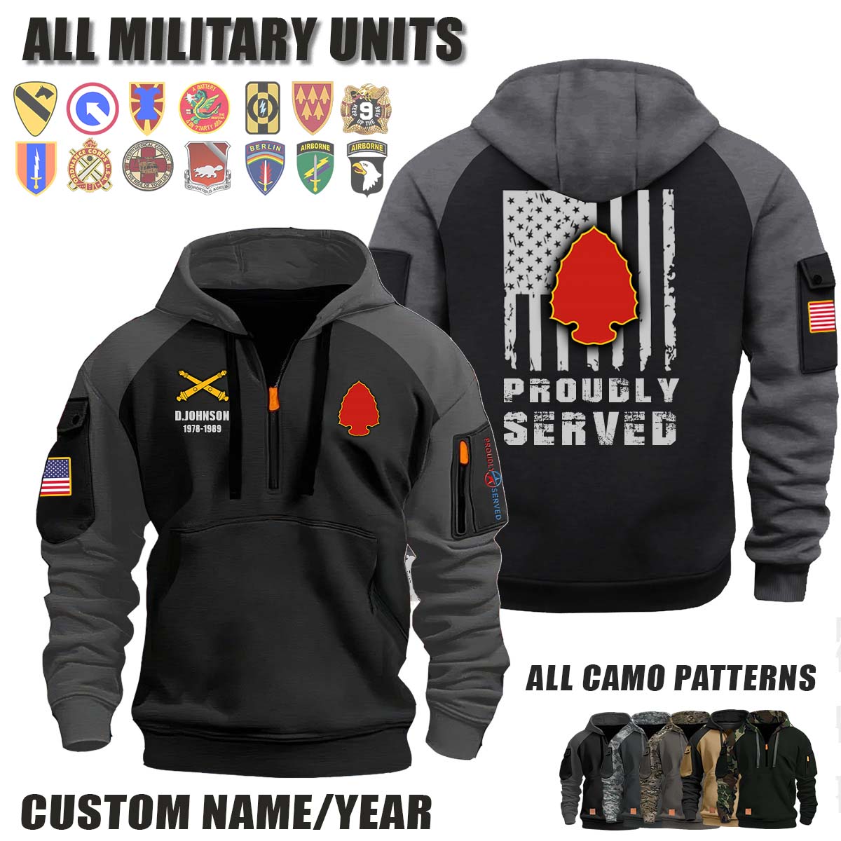 This 109th FA 109th Field Artillery Regiment_Camo Halfzip Hoodie lets you customize your Branch, Unit, Role, Rank, and Years Served — so your service, sacrifice, and pride live on.