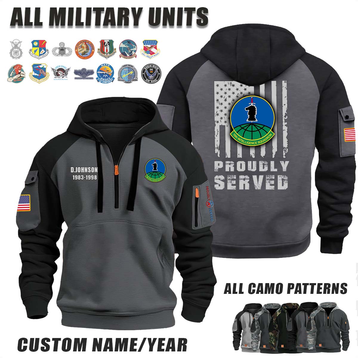 This 10th IS Intelligence Squadron_Camo Halfzip Hoodie lets you customize your Branch, Unit, Role, Rank, and Years Served — so your service, sacrifice, and pride live on.
