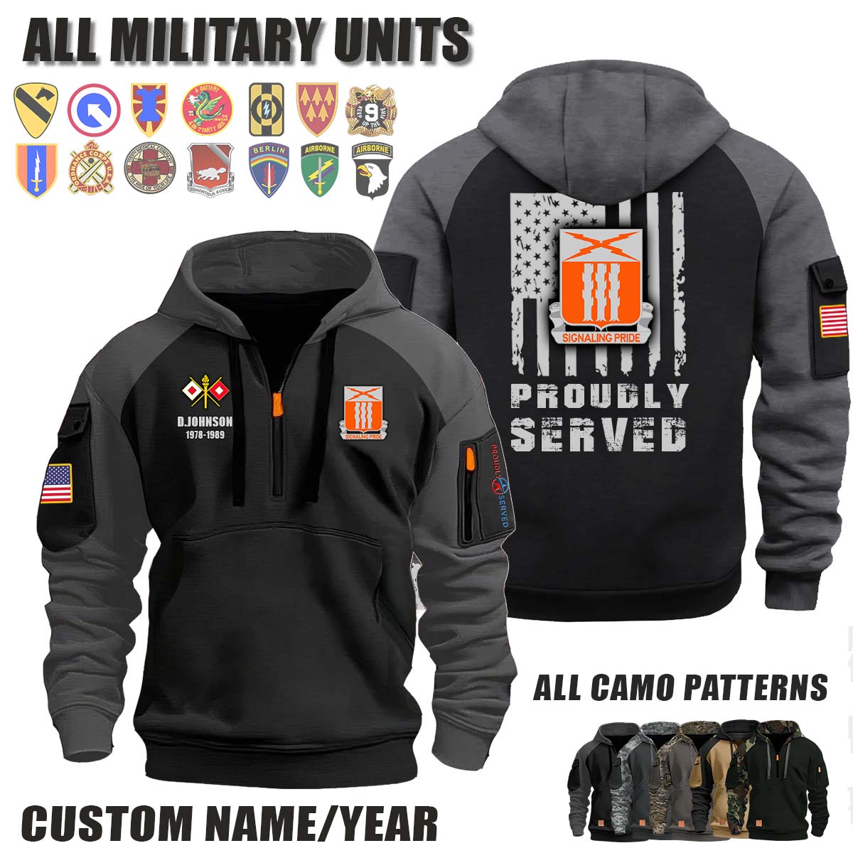 This 111th SIG BN 111th Signal Battalion_Camo Halfzip Hoodie lets you customize your Branch, Unit, Role, Rank, and Years Served — so your service, sacrifice, and pride live on.