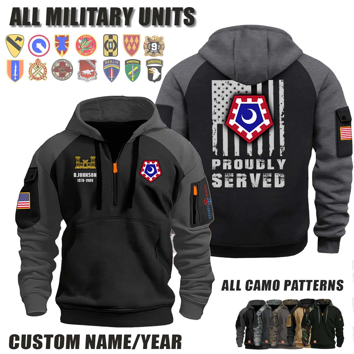 This 117th EN BDE 117th Engineer Brigade_Camo Halfzip Hoodie lets you customize your Branch, Unit, Role, Rank, and Years Served — so your service, sacrifice, and pride live on.