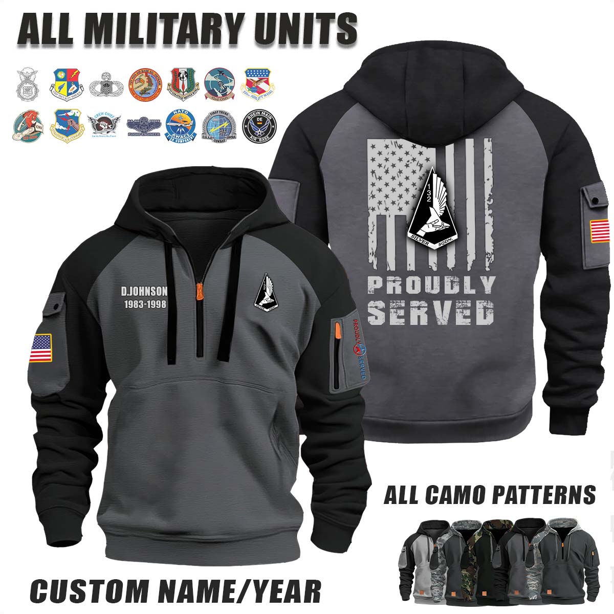 This 132nd Silver Squadron, ANG _Camo Halfzip Hoodie lets you customize your Branch, Unit, Role, Rank, and Years Served — so your service, sacrifice, and pride live on.