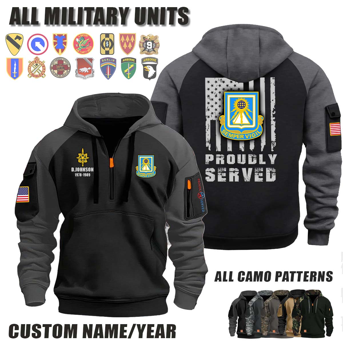 This 140th MI BN 140th Military Intelligence Battalion_Camo Halfzip Hoodie lets you customize your Branch, Unit, Role, Rank, and Years Served — so your service, sacrifice, and pride live on.