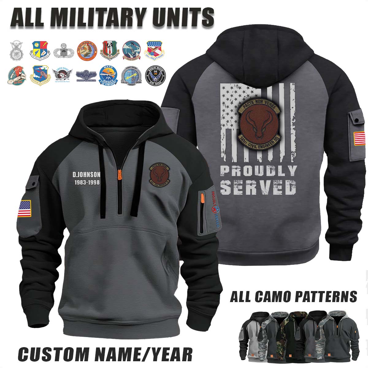 This 141st CES Civil Engineer Squadron_Camo Halfzip Hoodie lets you customize your Branch, Unit, Role, Rank, and Years Served — so your service, sacrifice, and pride live on.