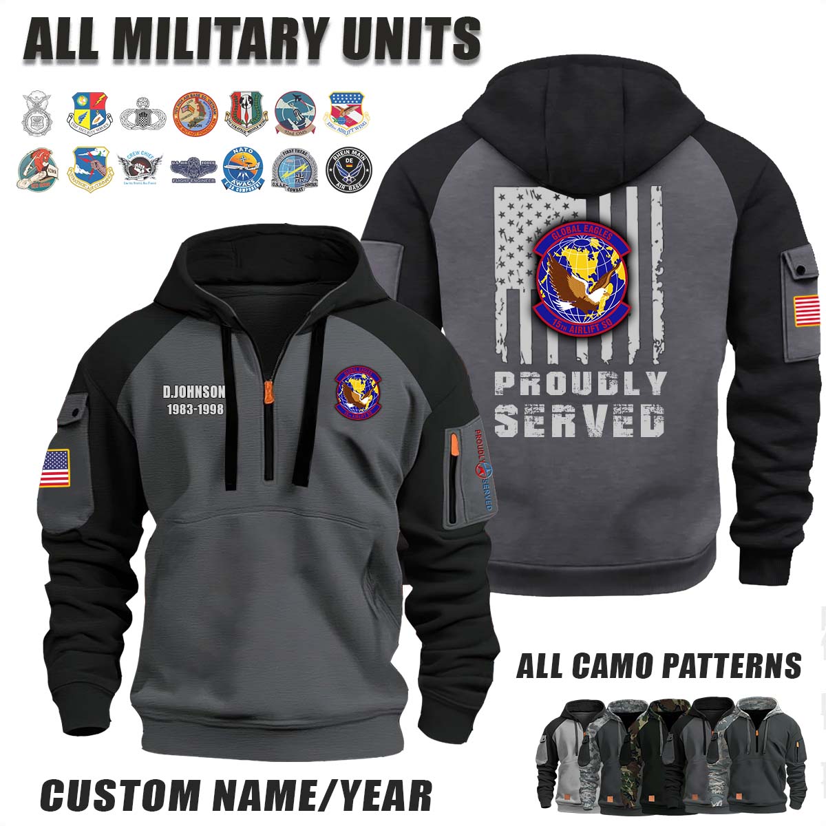 This 15th AS Airlift Squadron_Camo Halfzip Hoodie lets you customize your Branch, Unit, Role, Rank, and Years Served — so your service, sacrifice, and pride live on.