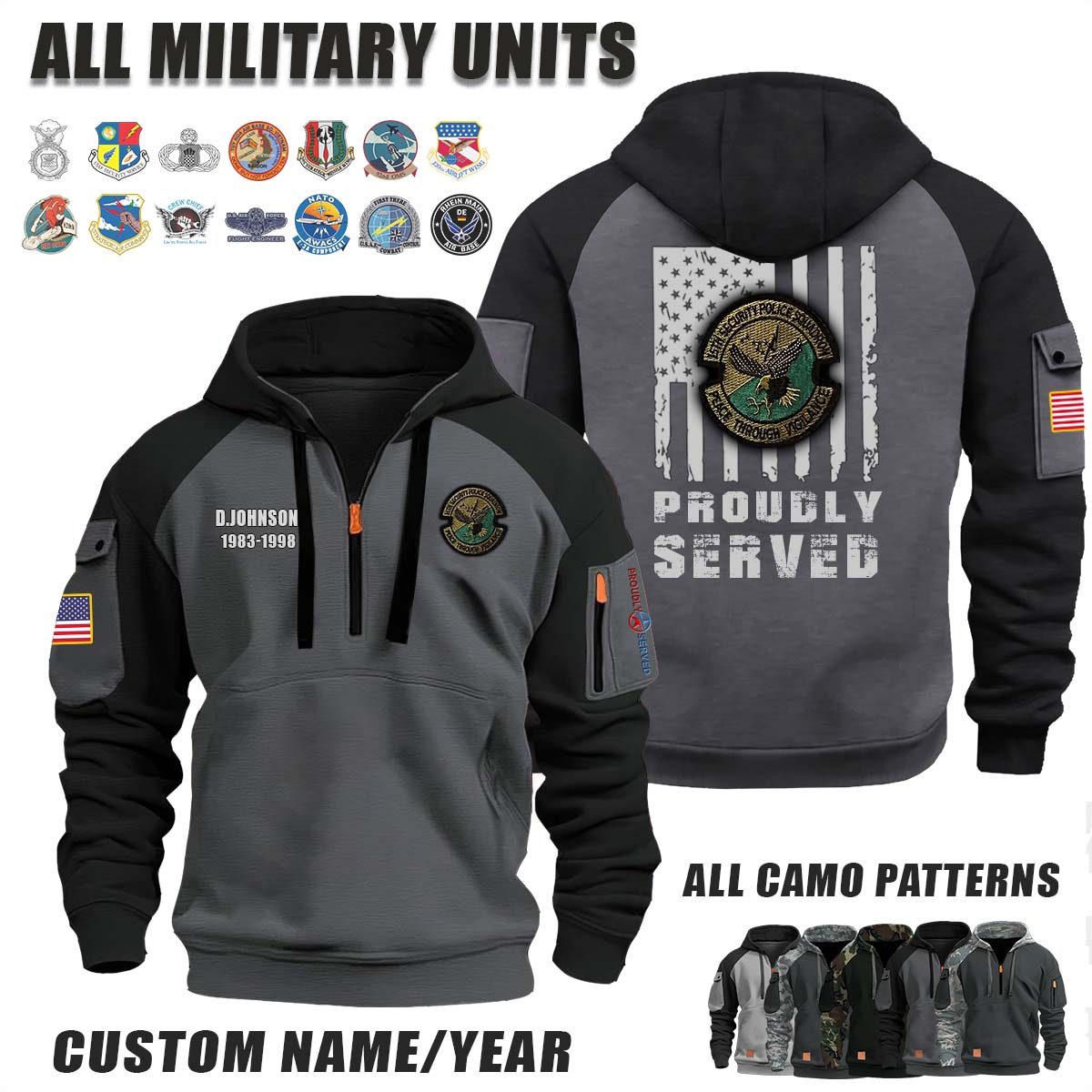 This 15th SPS Security Police Squadron_Camo Halfzip Hoodie lets you customize your Branch, Unit, Role, Rank, and Years Served — so your service, sacrifice, and pride live on.