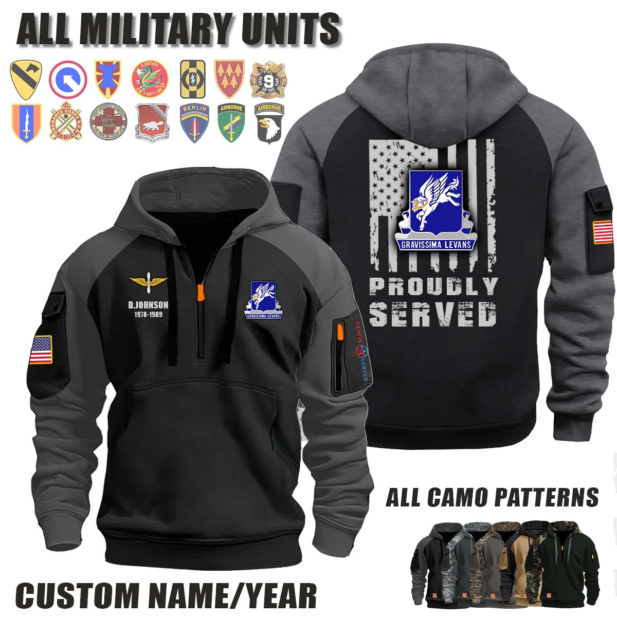 This 169th AVN REGT 169th Aviation Regiment_Camo Halfzip Hoodie lets you customize your Branch, Unit, Role, Rank, and Years Served — so your service, sacrifice, and pride live on.