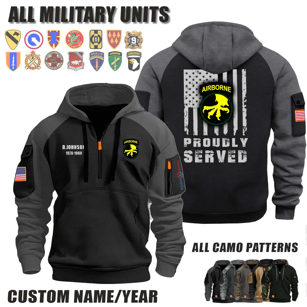 This 17th ABN DIV 17th Airborne Division_Camo Halfzip Hoodie lets you customize your Branch, Unit, Role, Rank, and Years Served — so your service, sacrifice, and pride live on.