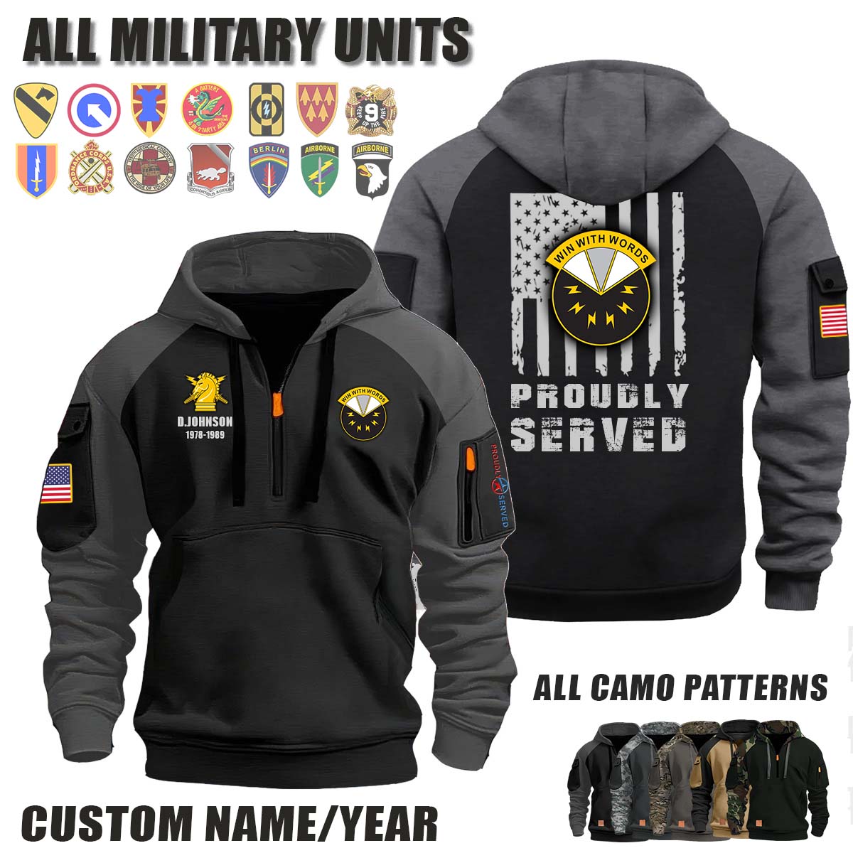 This 17th PSYOP BN 17th Psychological Operations Battalion_Camo Halfzip Hoodie lets you customize your Branch, Unit, Role, Rank, and Years Served — so your service, sacrifice, and pride live on.