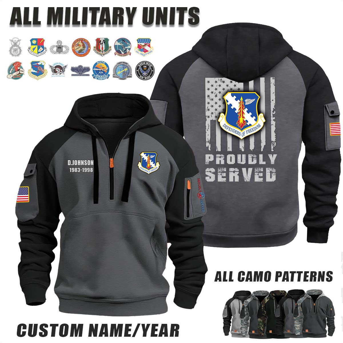 This 182nd AW 182nd Airlift Wing, ANG_Camo Halfzip Hoodie lets you customize your Branch, Unit, Role, Rank, and Years Served — so your service, sacrifice, and pride live on.
