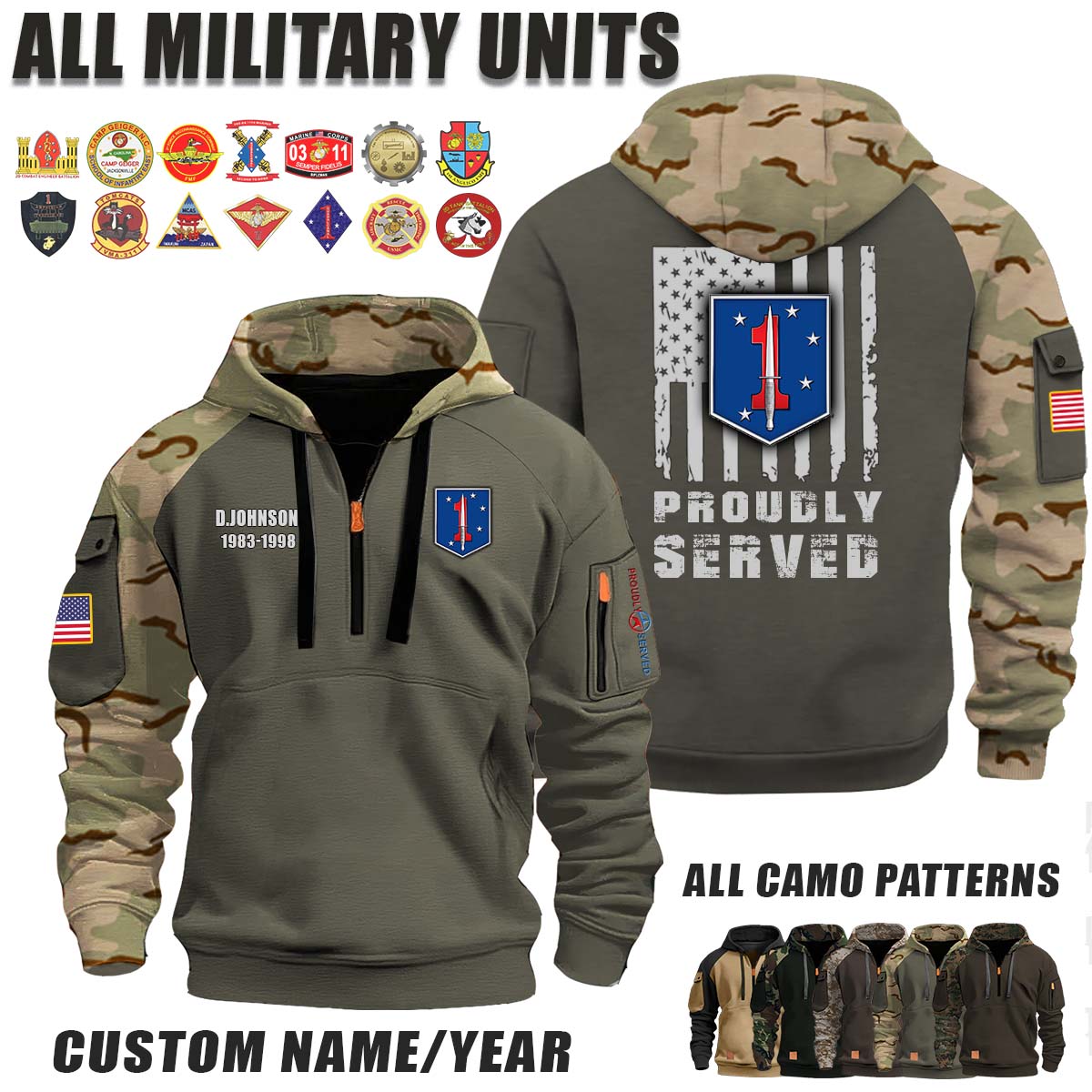 This 1st MRB 1st Marine Raider Battalion_Camo Halfzip Hoodie lets you customize your Branch, Unit, Role, Rank, and Years Served — so your service, sacrifice, and pride live on.