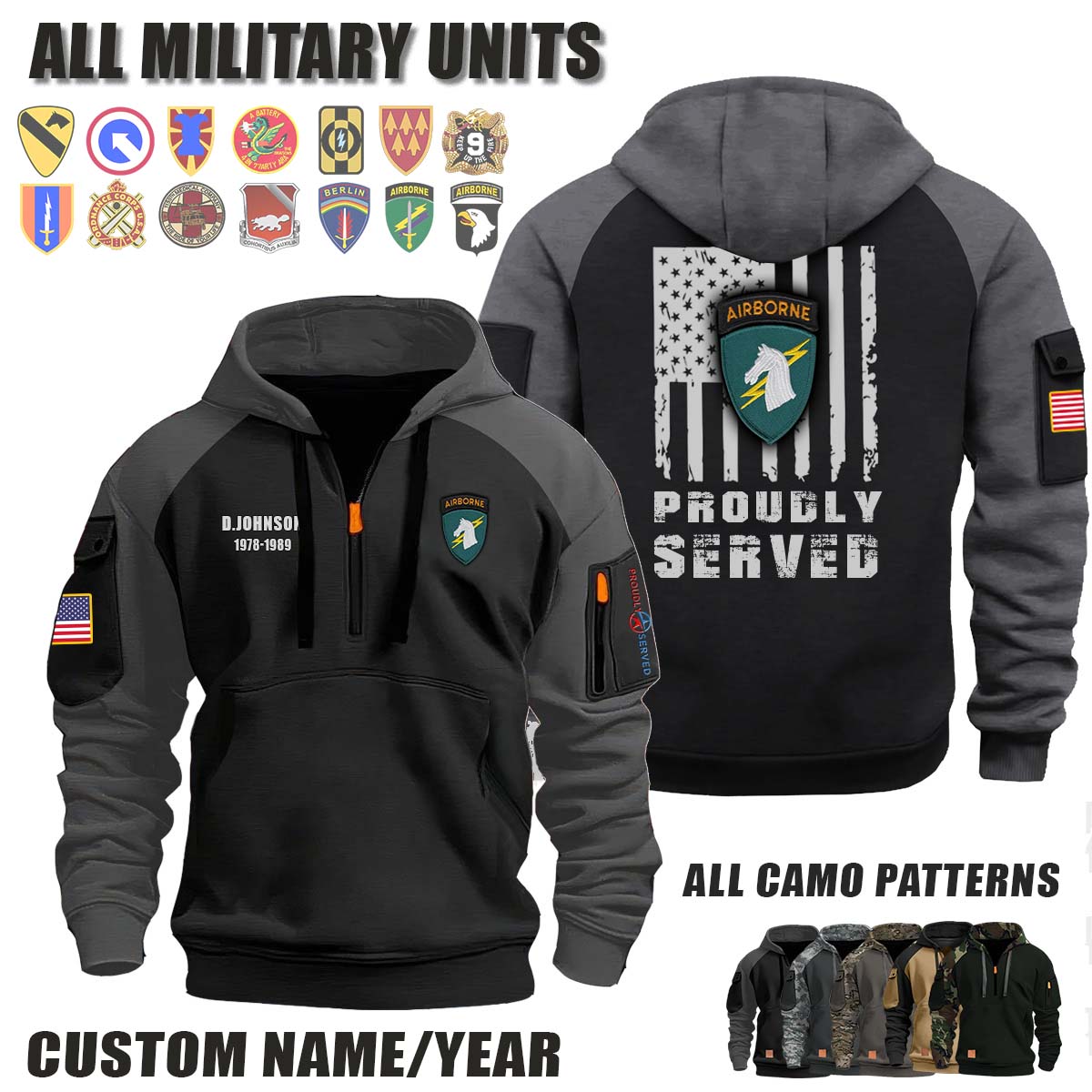 This 1st SOCOM 1st Special Operations Command (Airborne)_Camo Halfzip Hoodie lets you customize your Branch, Unit, Role, Rank, and Years Served — so your service, sacrifice, and pride live on.