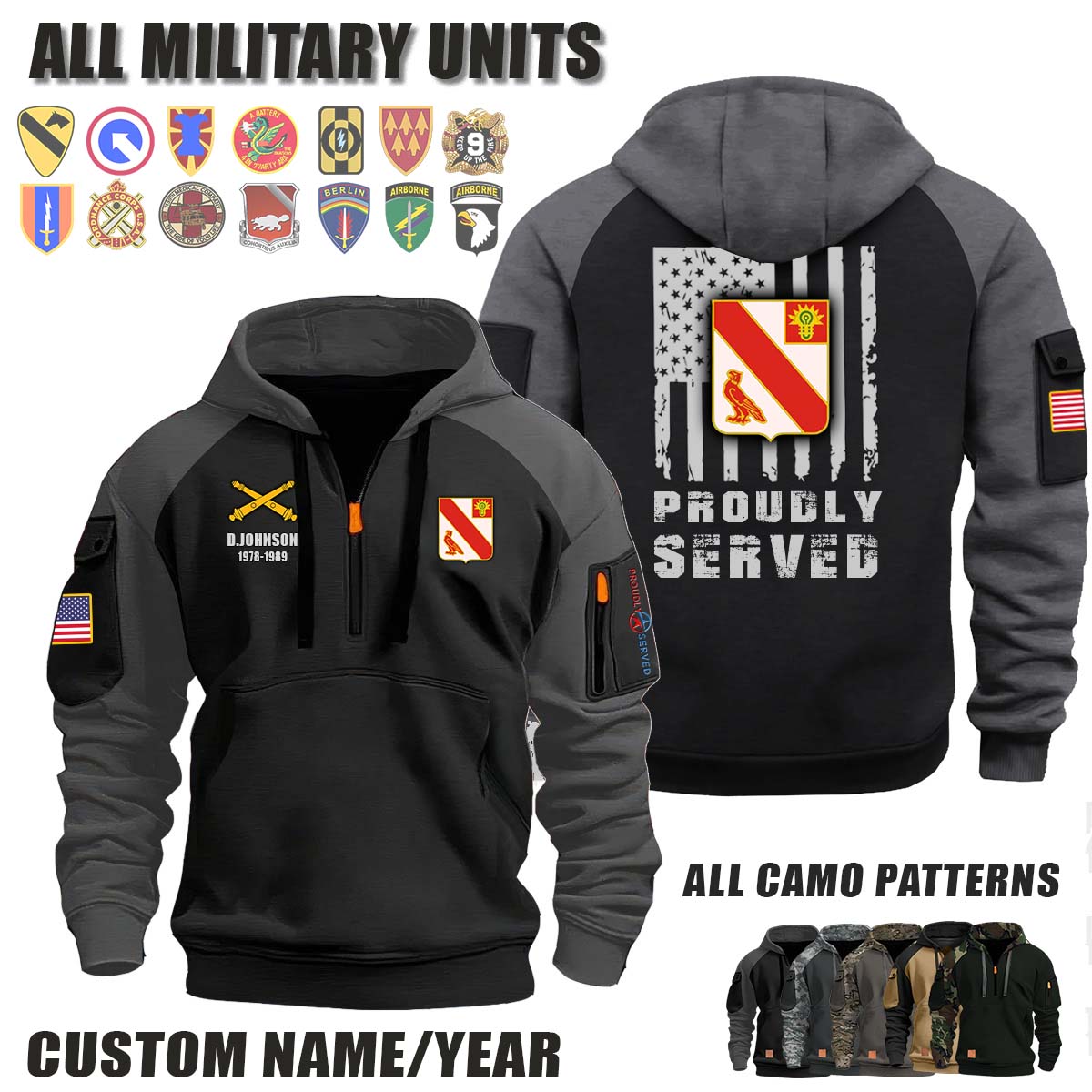 This 21st FA 21st Field Artillery Regiment_Camo Halfzip Hoodie lets you customize your Branch, Unit, Role, Rank, and Years Served — so your service, sacrifice, and pride live on.