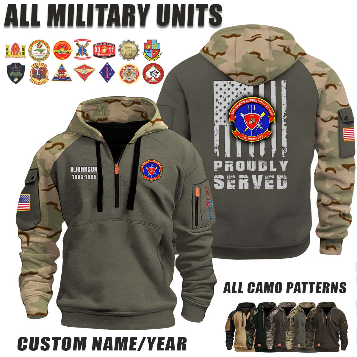 This 22nd MEU 22nd Marine Expeditionary Unit_Camo Halfzip Hoodie lets you customize your Branch, Unit, Role, Rank, and Years Served — so your service, sacrifice, and pride live on.
