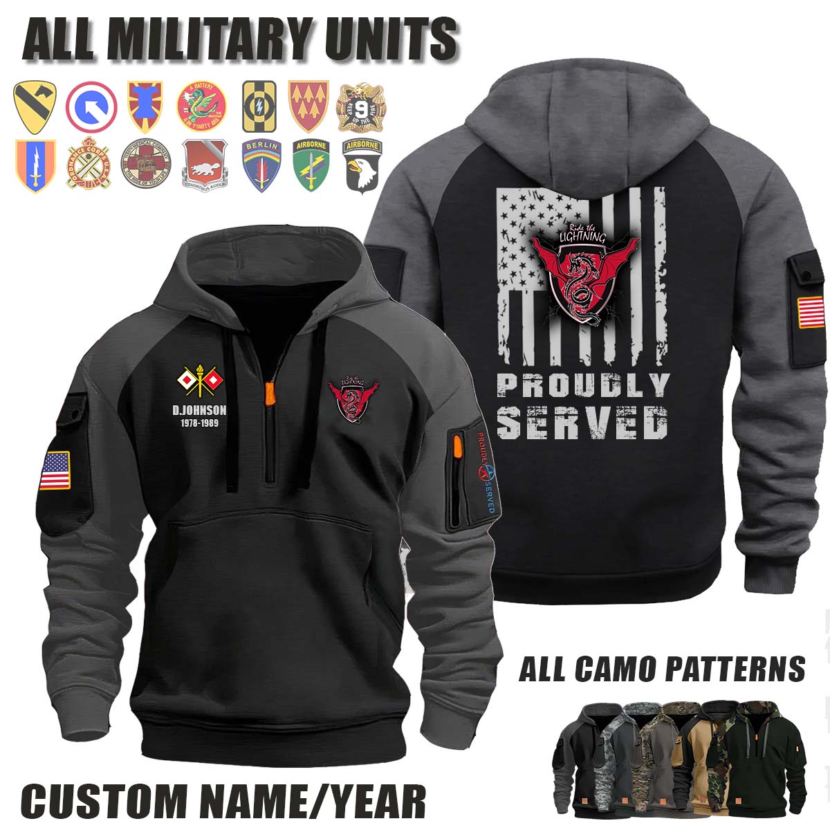 This 230th SIG CO 230th Signal Company_Camo Halfzip Hoodie lets you customize your Branch, Unit, Role, Rank, and Years Served — so your service, sacrifice, and pride live on.