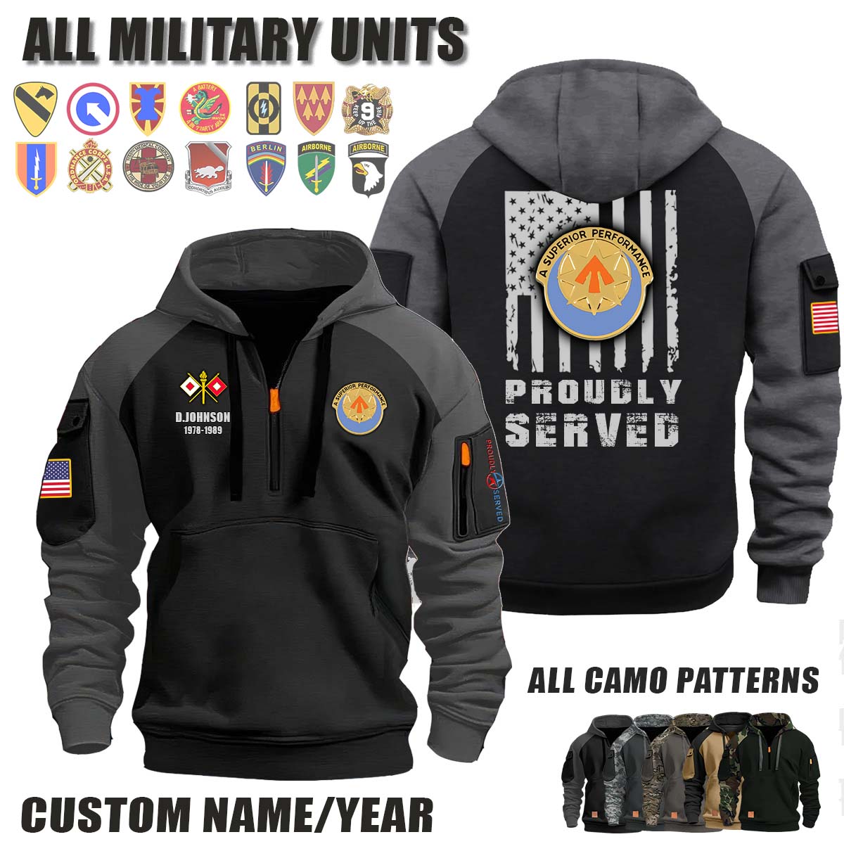 This 234th SIG BN 234th Signal Battalion_Camo Halfzip Hoodie lets you customize your Branch, Unit, Role, Rank, and Years Served — so your service, sacrifice, and pride live on.