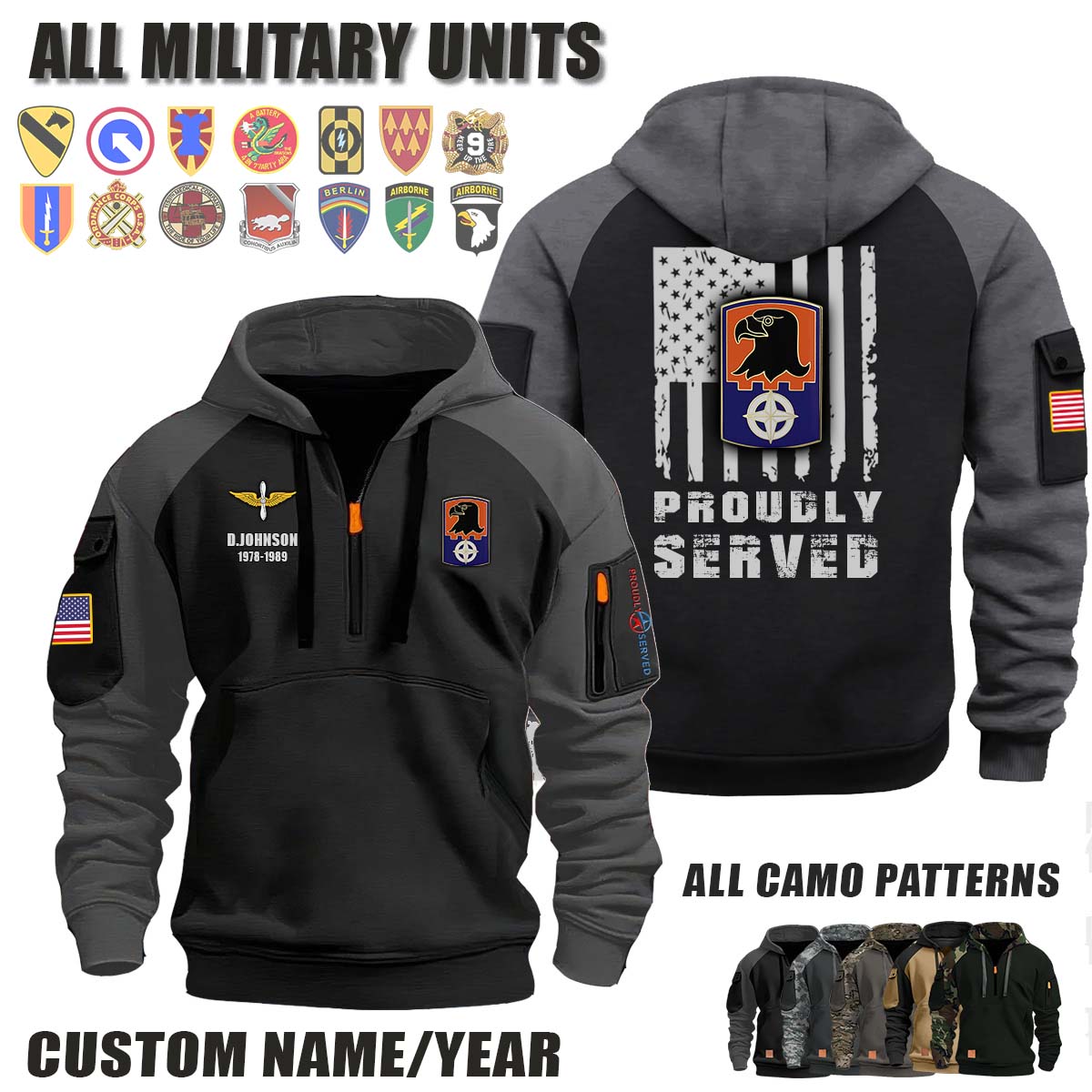 This 244th ECAB 244th Expeditionary Combat Aviation Brigade_Camo Halfzip Hoodie lets you customize your Branch, Unit, Role, Rank, and Years Served — so your service, sacrifice, and pride live on.