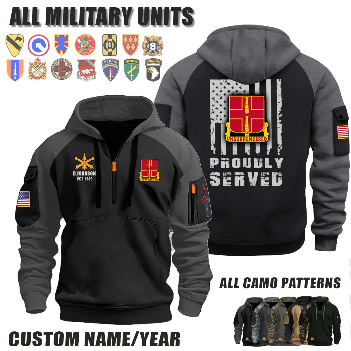 This 263th ADA 263rd Air Defense Artillery Regiment_Camo Halfzip Hoodie lets you customize your Branch, Unit, Role, Rank, and Years Served — so your service, sacrifice, and pride live on.