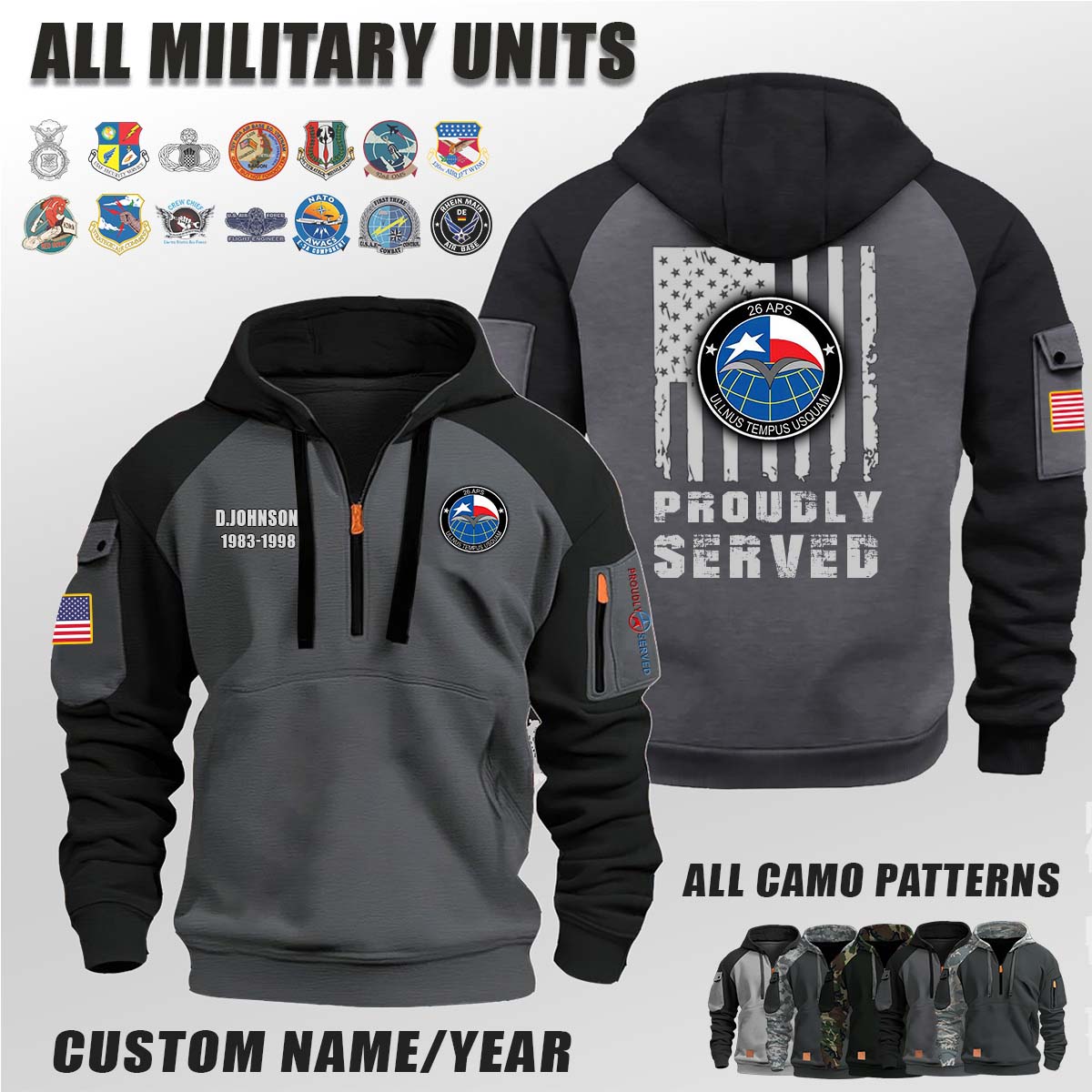 This 26th APS Aerial Port Squadron_Camo Halfzip Hoodie lets you customize your Branch, Unit, Role, Rank, and Years Served — so your service, sacrifice, and pride live on.
