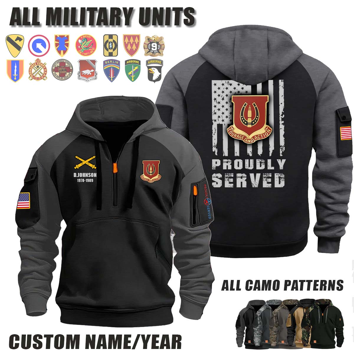 This 26th FA 26th Field Artillery Regiment_Camo Halfzip Hoodie lets you customize your Branch, Unit, Role, Rank, and Years Served — so your service, sacrifice, and pride live on.