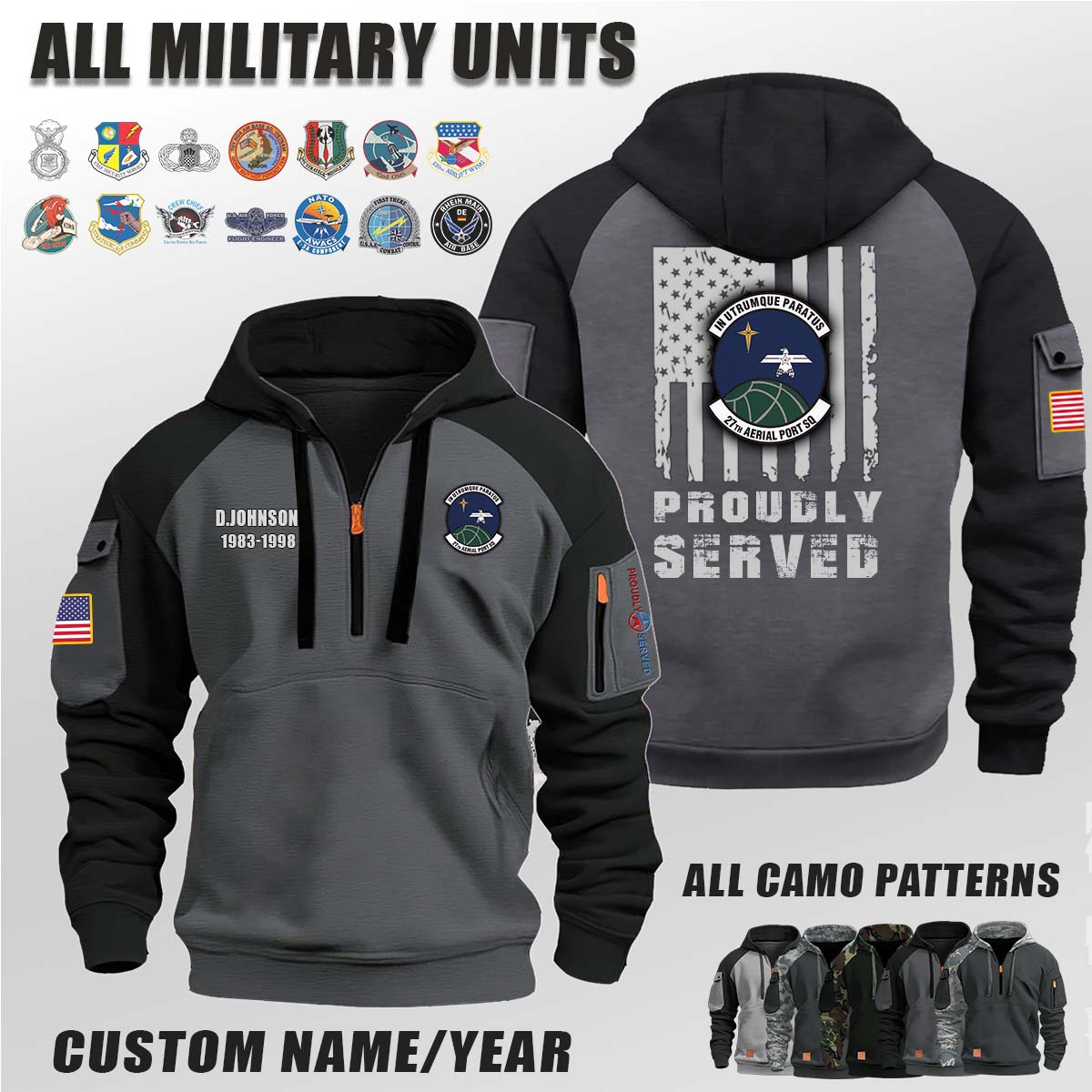 This 27th APS Aerial Port Squadron_Camo Halfzip Hoodie lets you customize your Branch, Unit, Role, Rank, and Years Served — so your service, sacrifice, and pride live on.