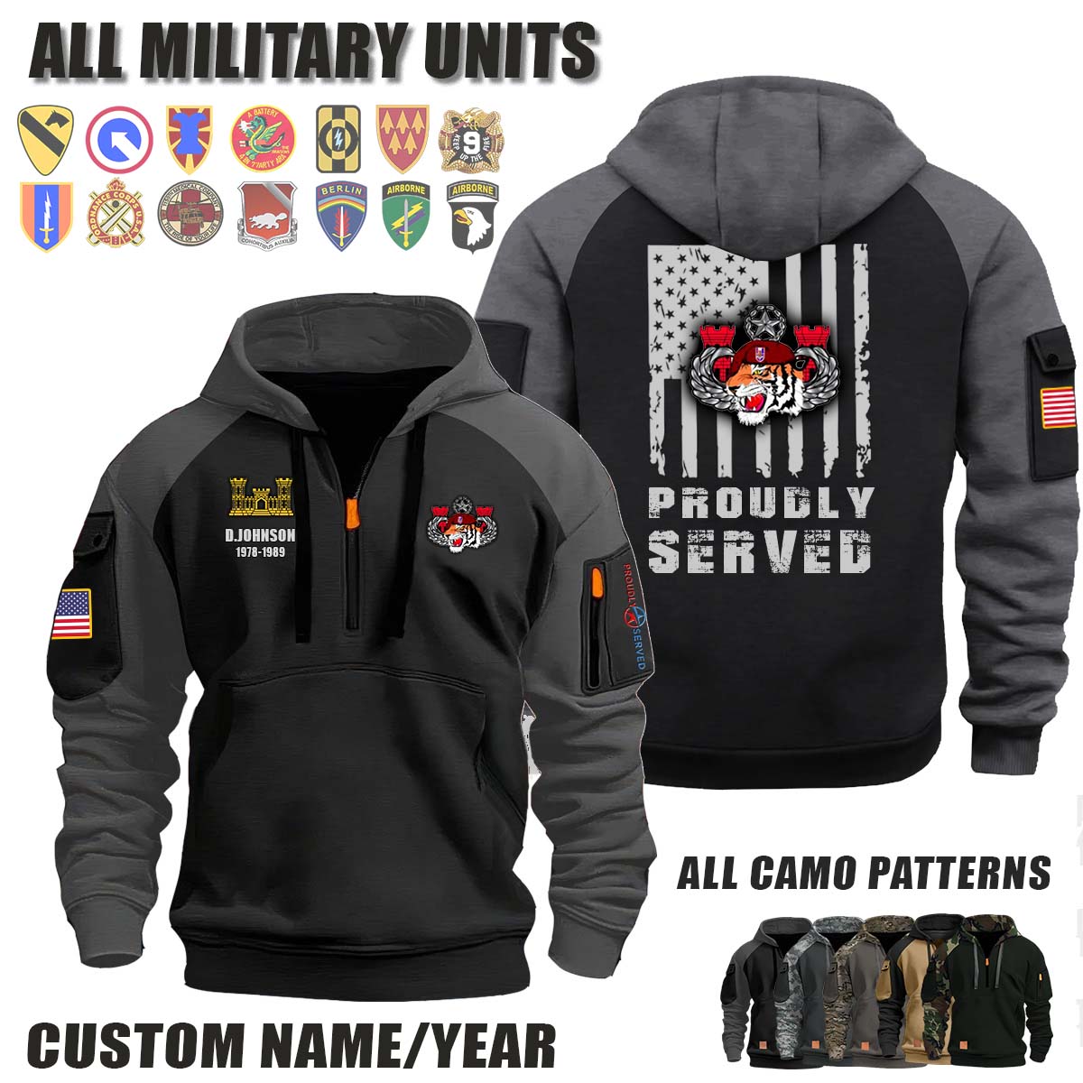 This 27th EN BN 27th Engineer Battalion, Combat Airborne_Camo Halfzip Hoodie lets you customize your Branch, Unit, Role, Rank, and Years Served — so your service, sacrifice, and pride live on.