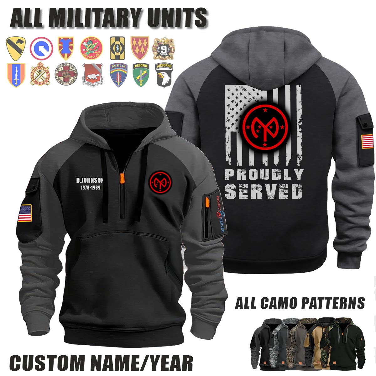 This 27th ID 27th Infantry Division_Camo Halfzip Hoodie lets you customize your Branch, Unit, Role, Rank, and Years Served — so your service, sacrifice, and pride live on.