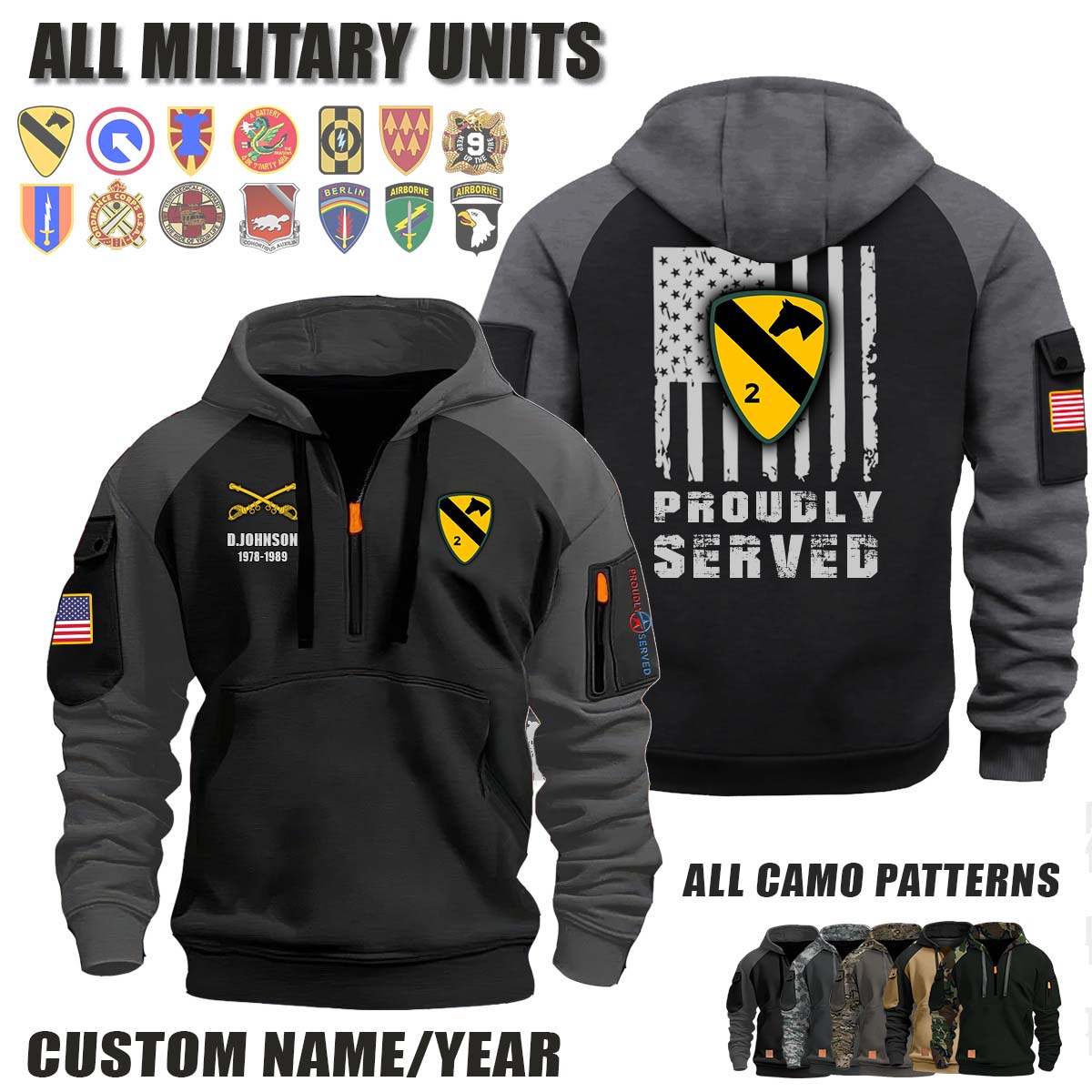 This 2nd BCT Brigade Combat Team 1st Cavalry Division_Camo Halfzip Hoodie lets you customize your Branch, Unit, Role, Rank, and Years Served — so your service, sacrifice, and pride live on.