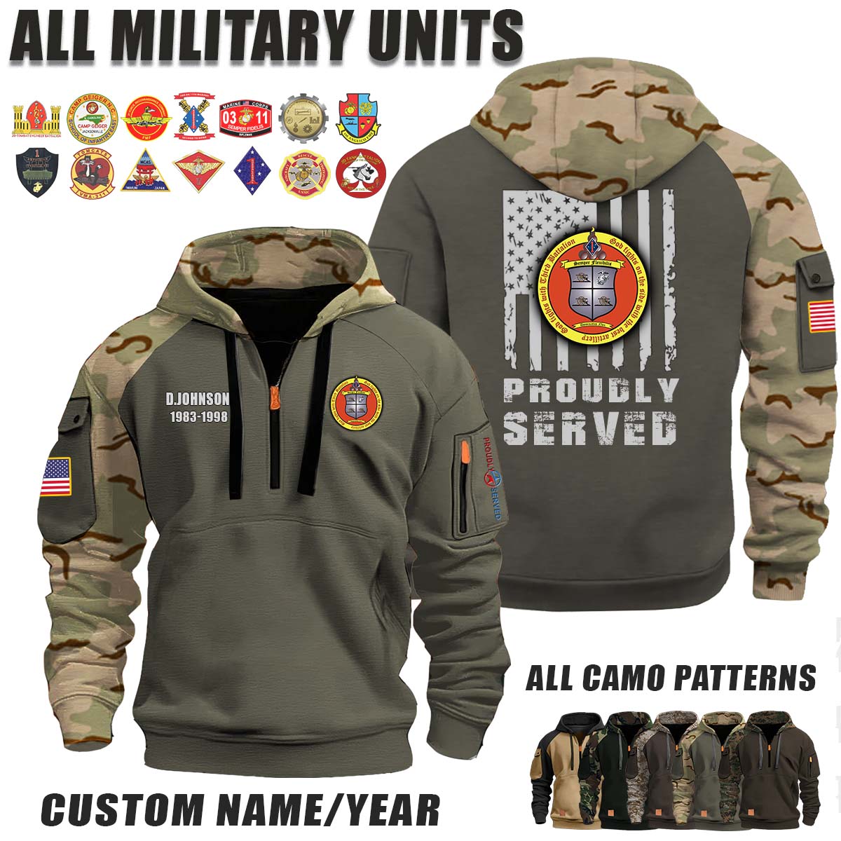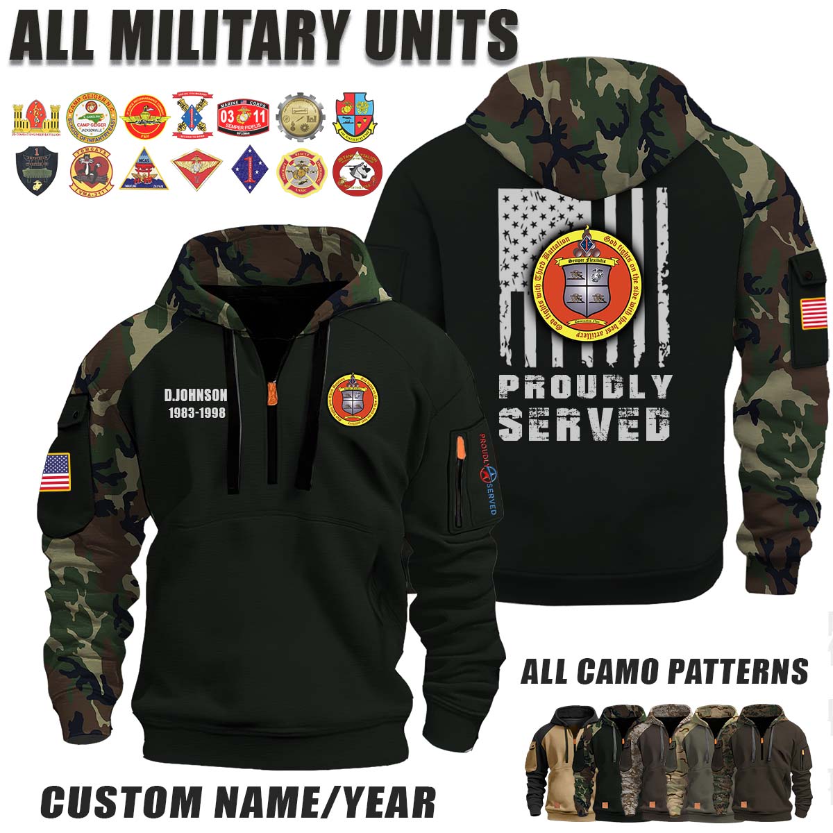 This 3-11 Marines 3rd Battalion 11th Marines_Camo Halfzip Hoodie lets you customize your Branch, Unit, Role, Rank, and Years Served — so your service, sacrifice, and pride live on.