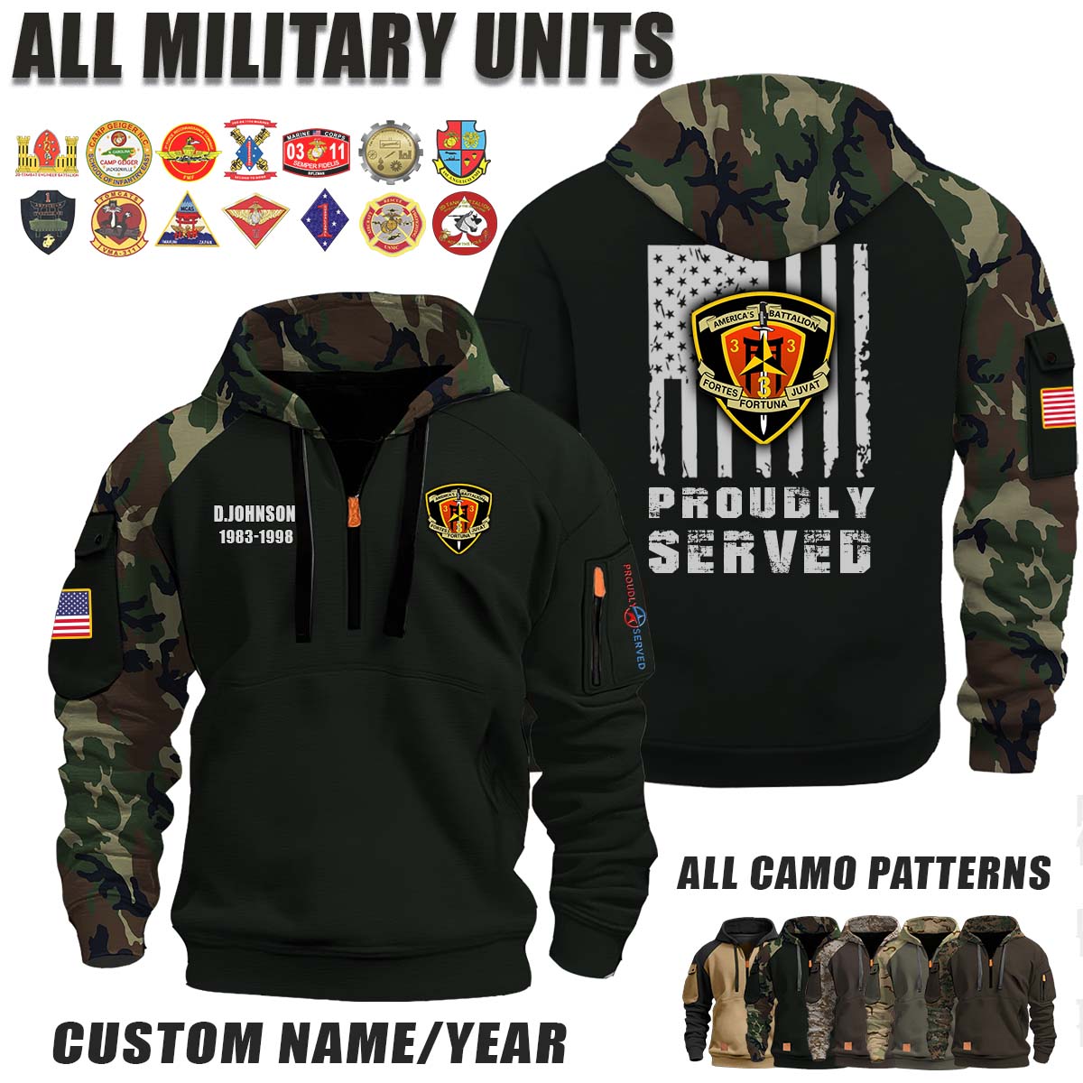 This 3-3 Marines 3rd Battalion 3rd Marines_Camo Halfzip Hoodie lets you customize your Branch, Unit, Role, Rank, and Years Served — so your service, sacrifice, and pride live on.