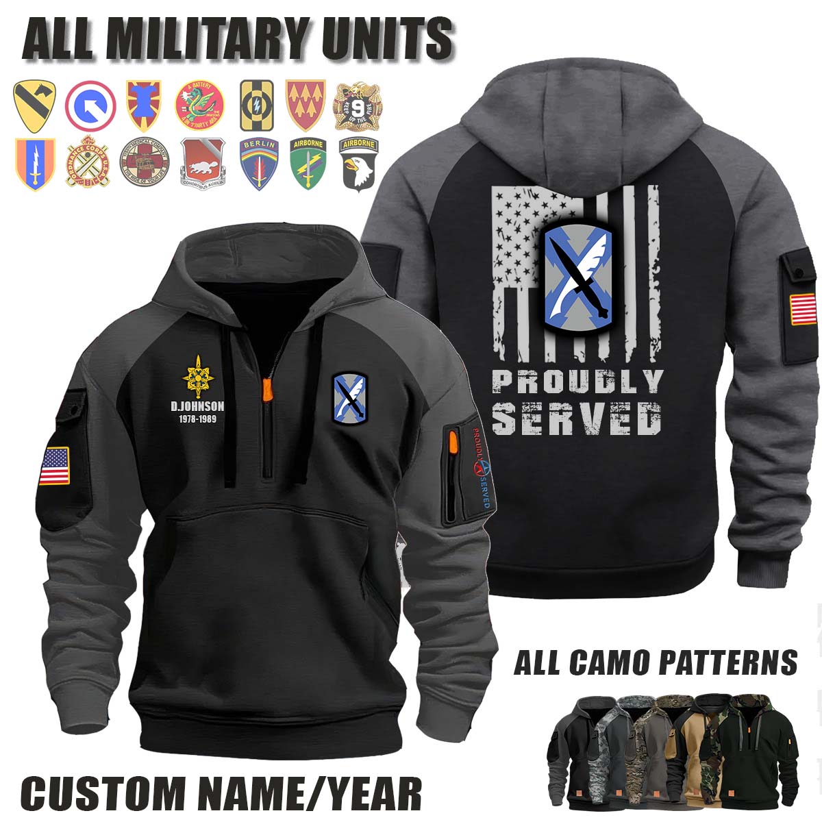 This 300th MI BDE 300th Military Intelligence Brigade_Camo Halfzip Hoodie lets you customize your Branch, Unit, Role, Rank, and Years Served — so your service, sacrifice, and pride live on.