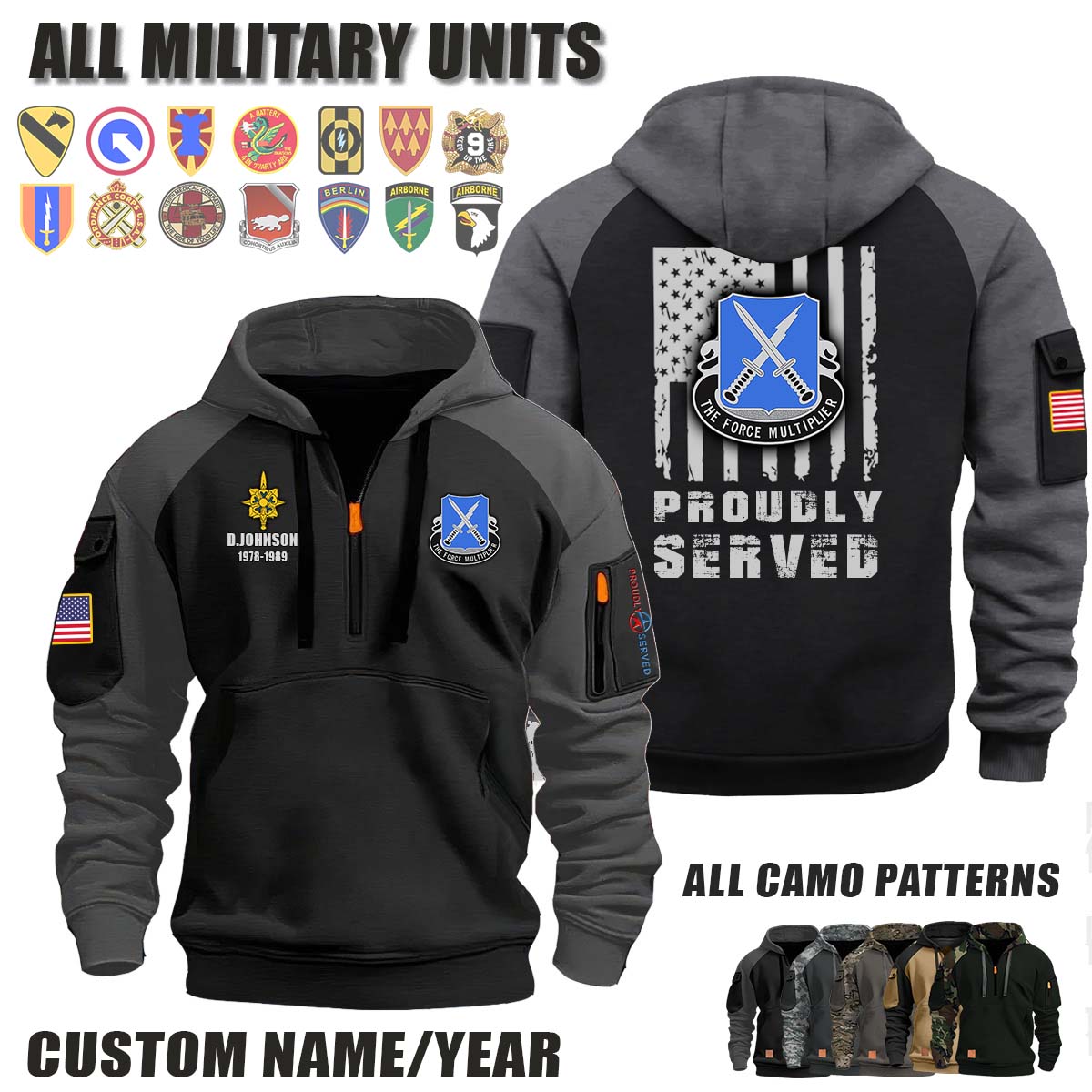 This 301st MI BN 301st Military Intelligence Battalion_Camo Halfzip Hoodie lets you customize your Branch, Unit, Role, Rank, and Years Served — so your service, sacrifice, and pride live on.