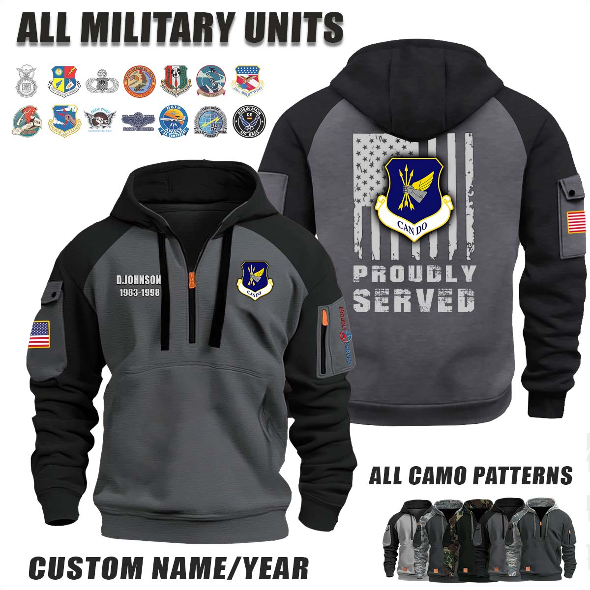 This 305th AMW Air Mobility Wing_Camo Halfzip Hoodie lets you customize your Branch, Unit, Role, Rank, and Years Served — so your service, sacrifice, and pride live on.