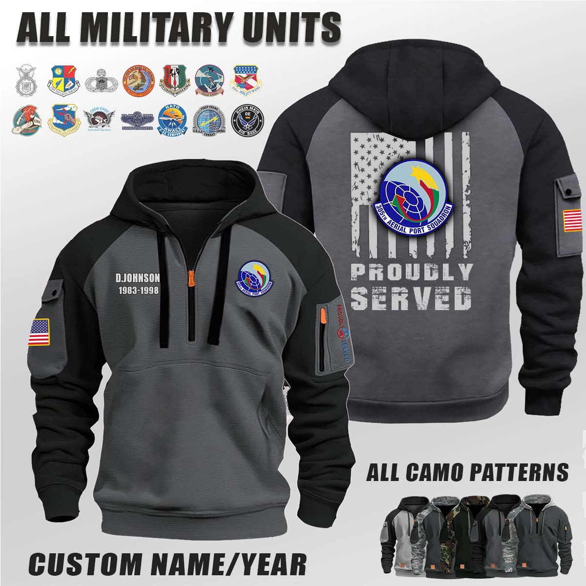 This 305th APS Aerial Port Squadron_Camo Halfzip Hoodie lets you customize your Branch, Unit, Role, Rank, and Years Served — so your service, sacrifice, and pride live on.