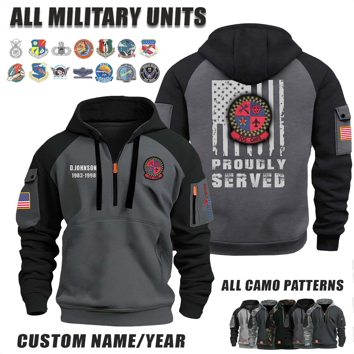 This 305th OMS Organizational Maintenance Squadron_Camo Halfzip Hoodie lets you customize your Branch, Unit, Role, Rank, and Years Served — so your service, sacrifice, and pride live on.