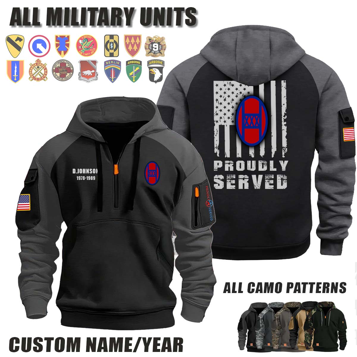 This 30th ID 30th Infantry Division_Camo Halfzip Hoodie lets you customize your Branch, Unit, Role, Rank, and Years Served — so your service, sacrifice, and pride live on.