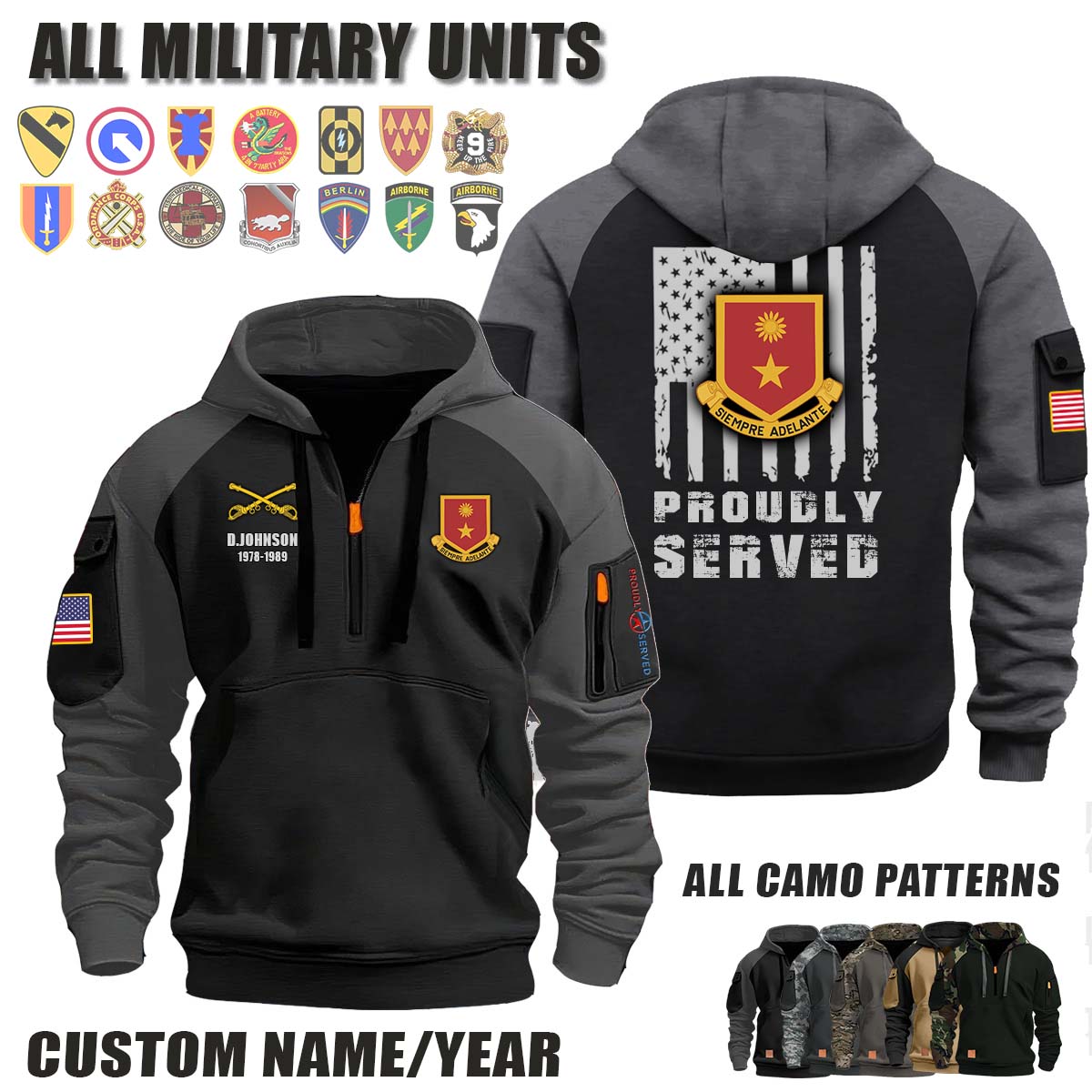 This 311th Cavalry Regiment_Camo Halfzip Hoodie lets you customize your Branch, Unit, Role, Rank, and Years Served — so your service, sacrifice, and pride live on.