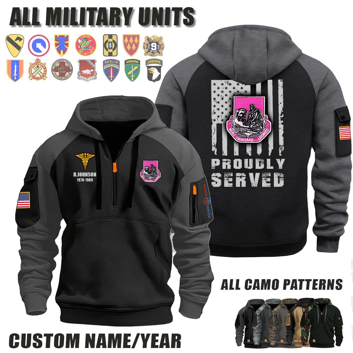 This 318th MED BN 318th Medical Battalion_Camo Halfzip Hoodie lets you customize your Branch, Unit, Role, Rank, and Years Served — so your service, sacrifice, and pride live on.