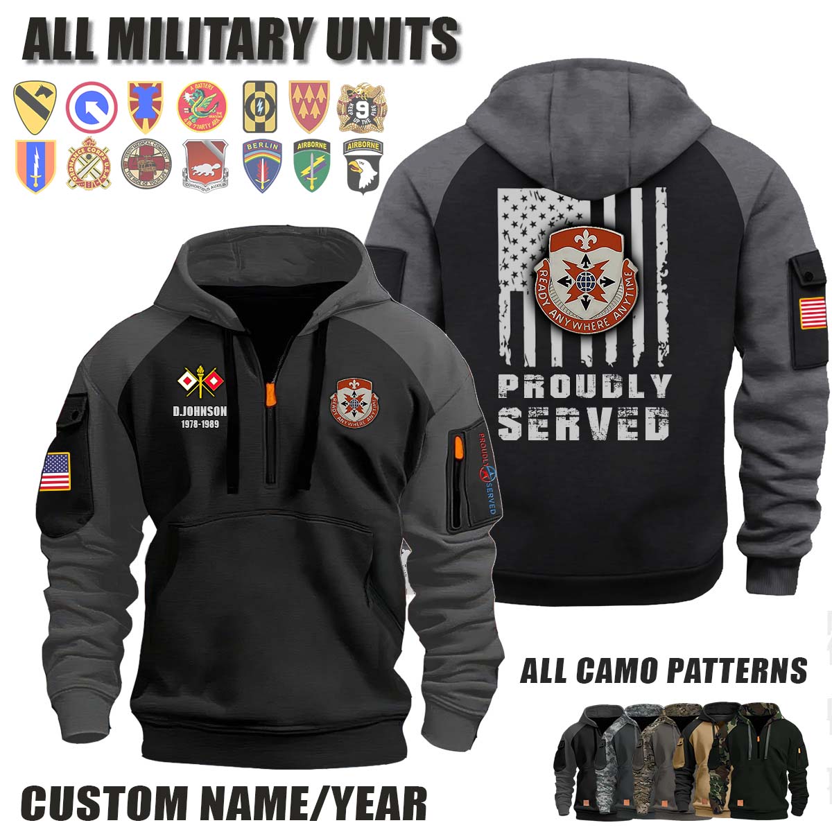 This 324th SIG BN 324th Signal Battalion_Camo Halfzip Hoodie lets you customize your Branch, Unit, Role, Rank, and Years Served — so your service, sacrifice, and pride live on.