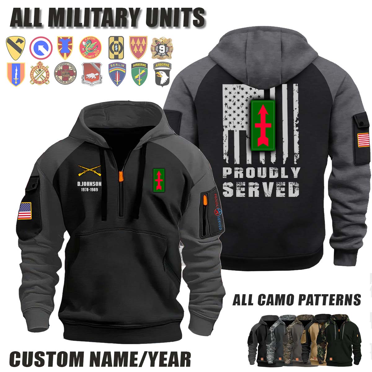 This 32nd IBCT 32nd Infantry Brigade Combat Team_Camo Halfzip Hoodie lets you customize your Branch, Unit, Role, Rank, and Years Served — so your service, sacrifice, and pride live on.