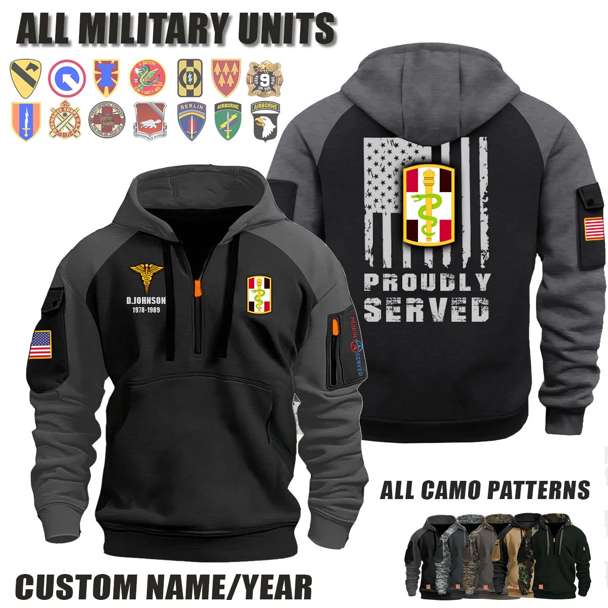This 330th MED BDE 330th Medical Brigade_Camo Halfzip Hoodie lets you customize your Branch, Unit, Role, Rank, and Years Served — so your service, sacrifice, and pride live on.