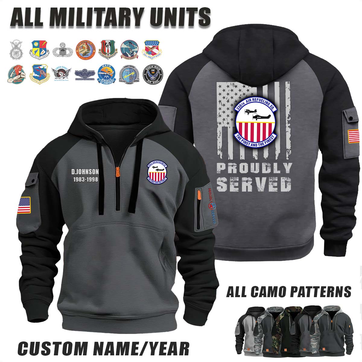 This 336th ARS Air Refueling Squadron_Camo Halfzip Hoodie lets you customize your Branch, Unit, Role, Rank, and Years Served — so your service, sacrifice, and pride live on.