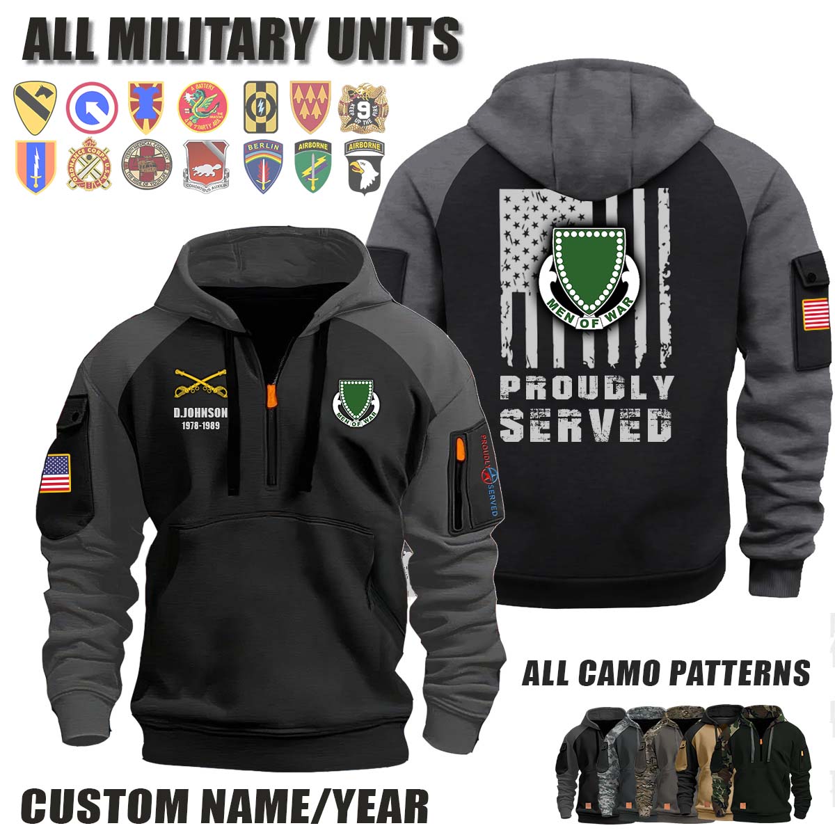This 33rd Cavalry Regiment_Camo Halfzip Hoodie lets you customize your Branch, Unit, Role, Rank, and Years Served — so your service, sacrifice, and pride live on.
