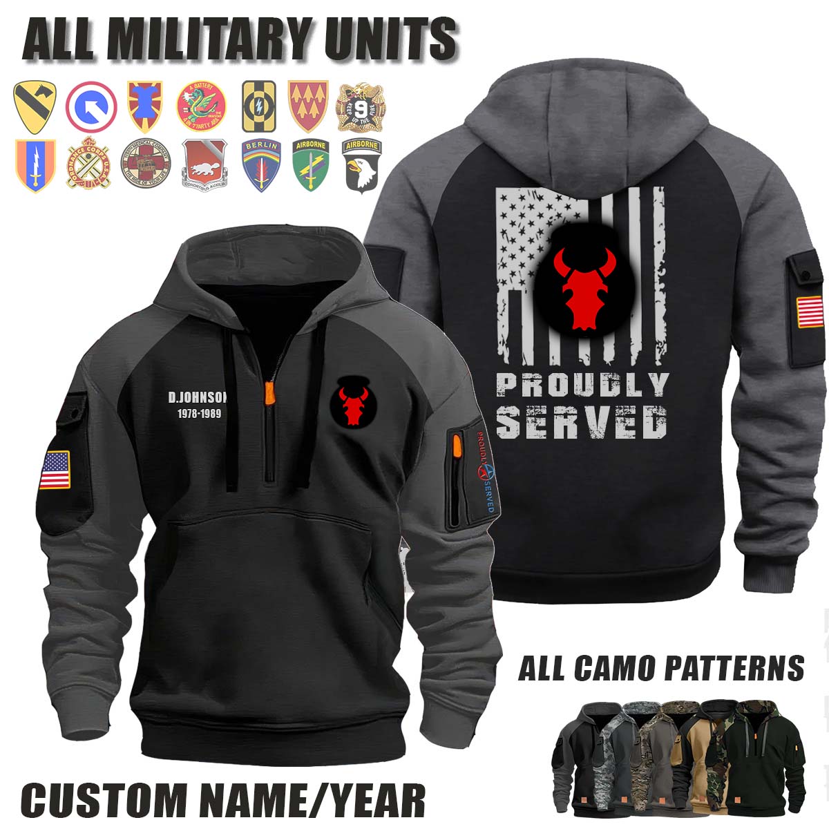 This 34th ID 34th Infantry Division_Camo Halfzip Hoodie lets you customize your Branch, Unit, Role, Rank, and Years Served — so your service, sacrifice, and pride live on.