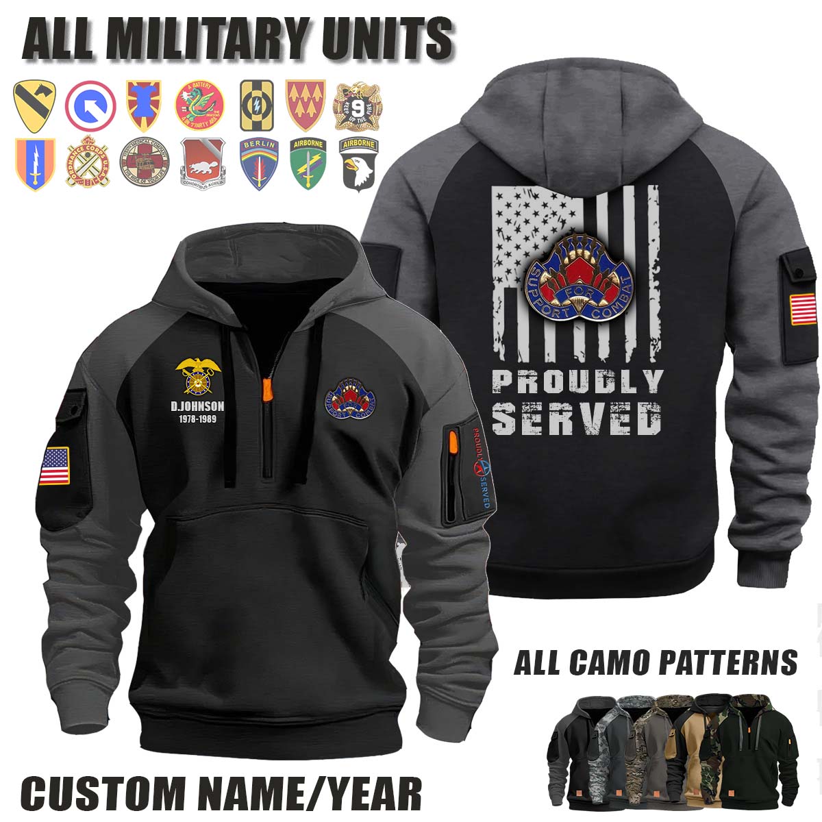 This 363rd QM BN 363rd Quartermaster Battalion_Camo Halfzip Hoodie lets you customize your Branch, Unit, Role, Rank, and Years Served — so your service, sacrifice, and pride live on.