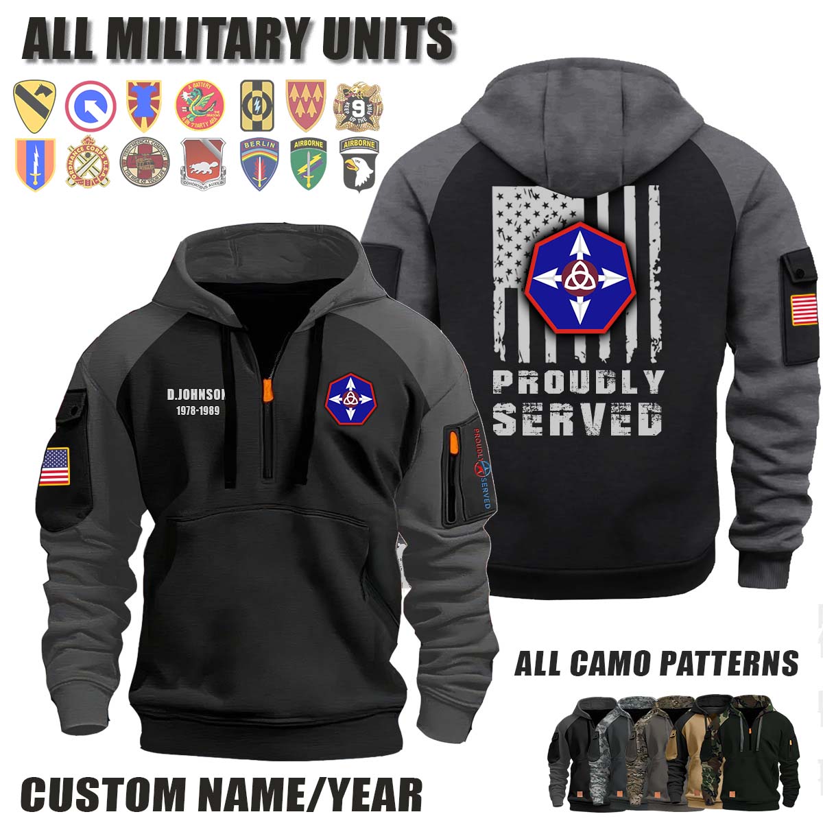 This 364th ESC 364th Expeditionary Sustainment Command_Camo Halfzip Hoodie lets you customize your Branch, Unit, Role, Rank, and Years Served — so your service, sacrifice, and pride live on.