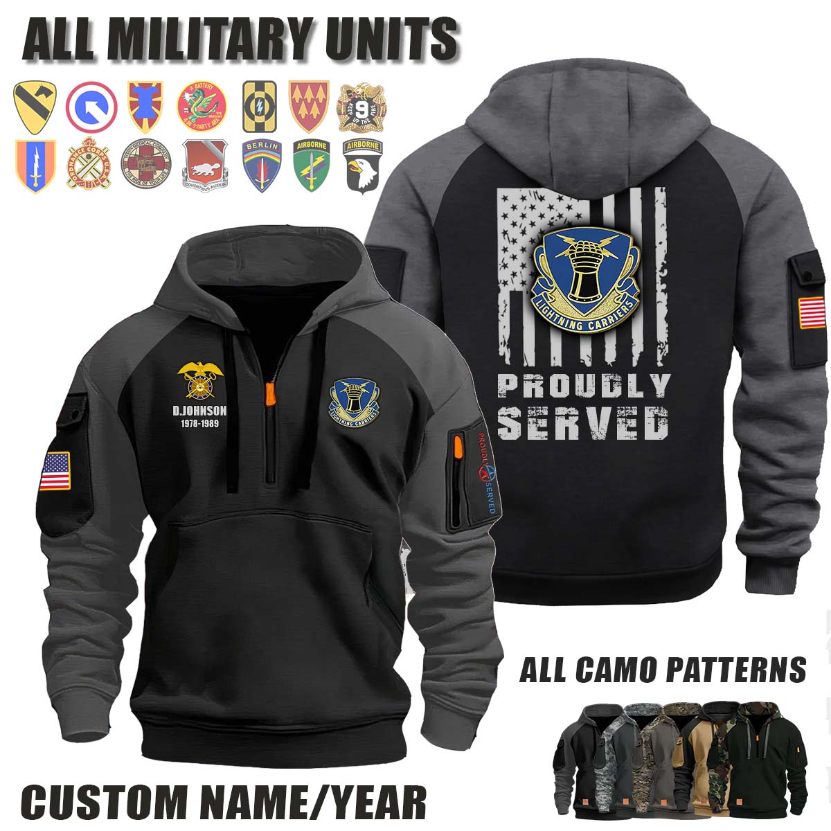This 373rd QM BN 373rd Quartermaster Battalion_Camo Halfzip Hoodie lets you customize your Branch, Unit, Role, Rank, and Years Served — so your service, sacrifice, and pride live on.