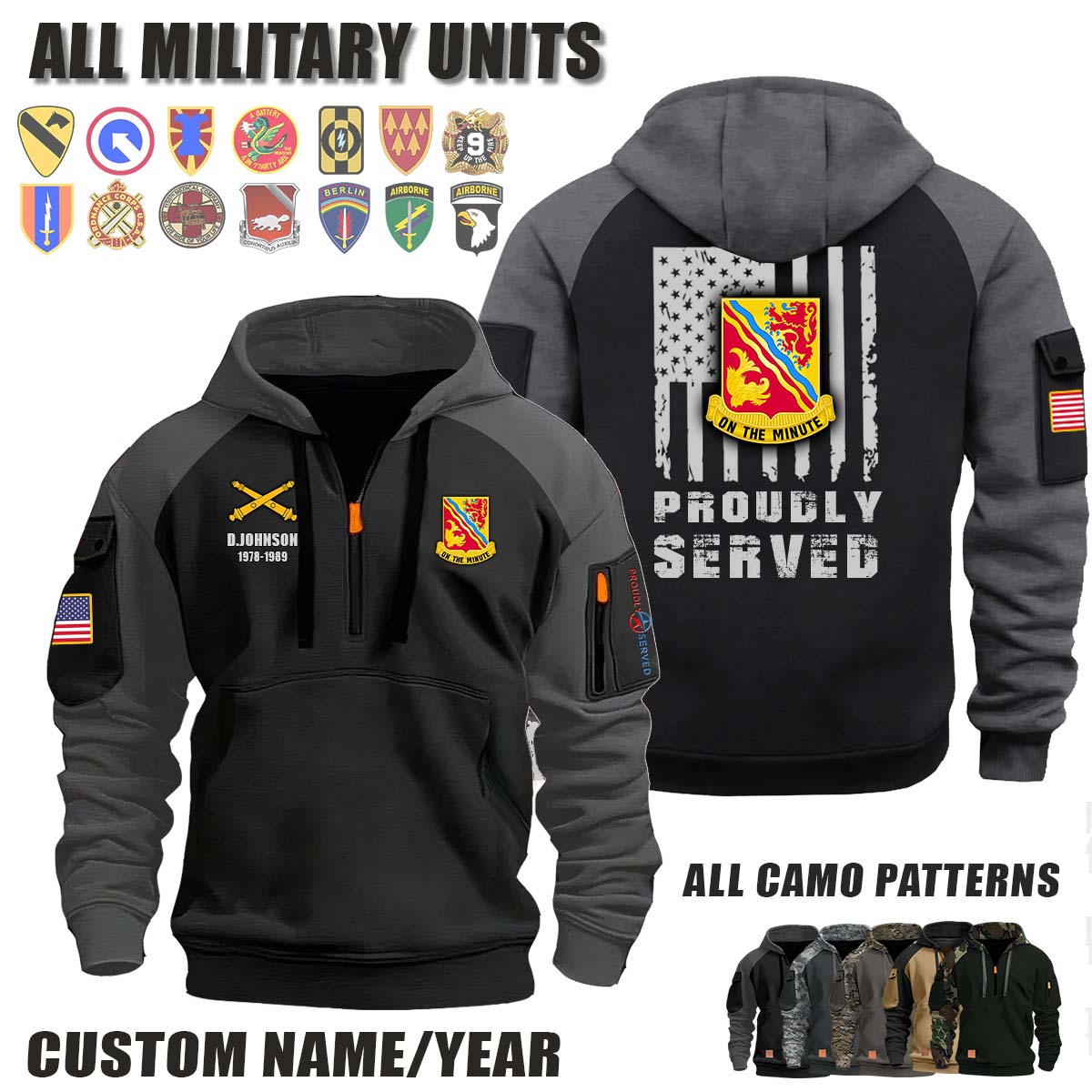 This 37th FA 37th Field Artillery Regiment_Camo Halfzip Hoodie lets you customize your Branch, Unit, Role, Rank, and Years Served — so your service, sacrifice, and pride live on.