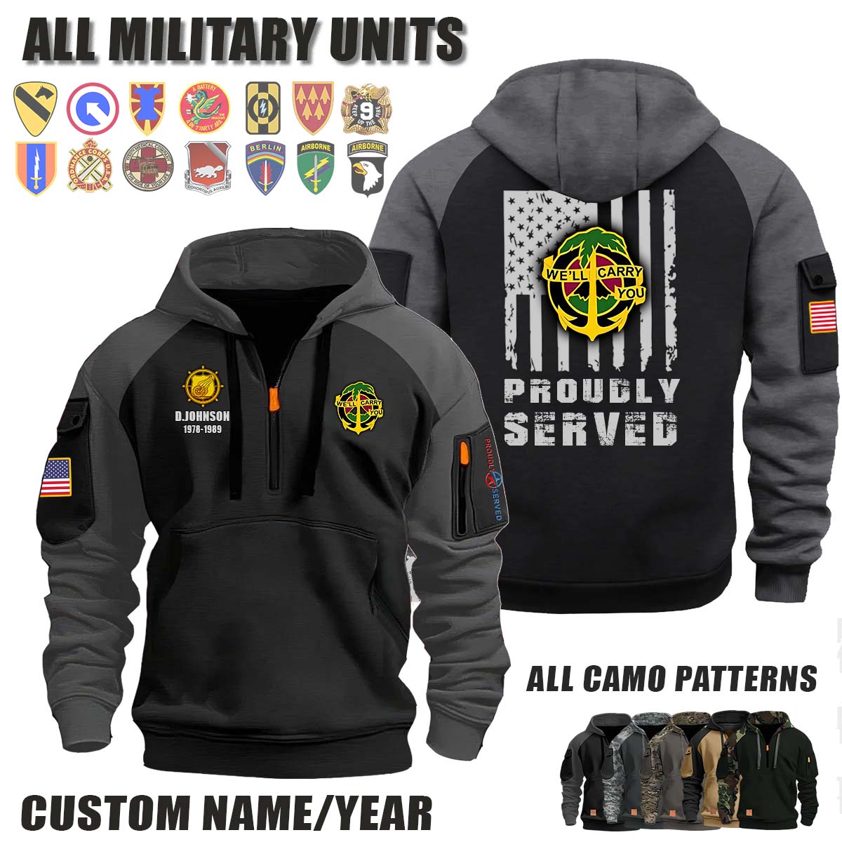 This 39th TRANS BN 39th Transportation Battalion_Camo Halfzip Hoodie lets you customize your Branch, Unit, Role, Rank, and Years Served — so your service, sacrifice, and pride live on.