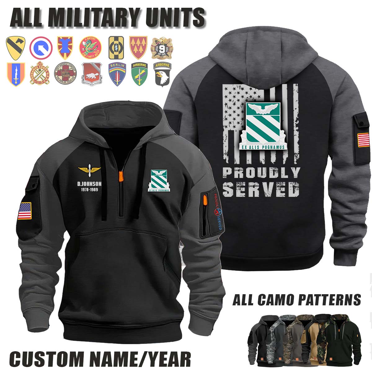 This 3rd AVN REGT 3rd Aviation Regiment_Camo Halfzip Hoodie lets you customize your Branch, Unit, Role, Rank, and Years Served — so your service, sacrifice, and pride live on.
