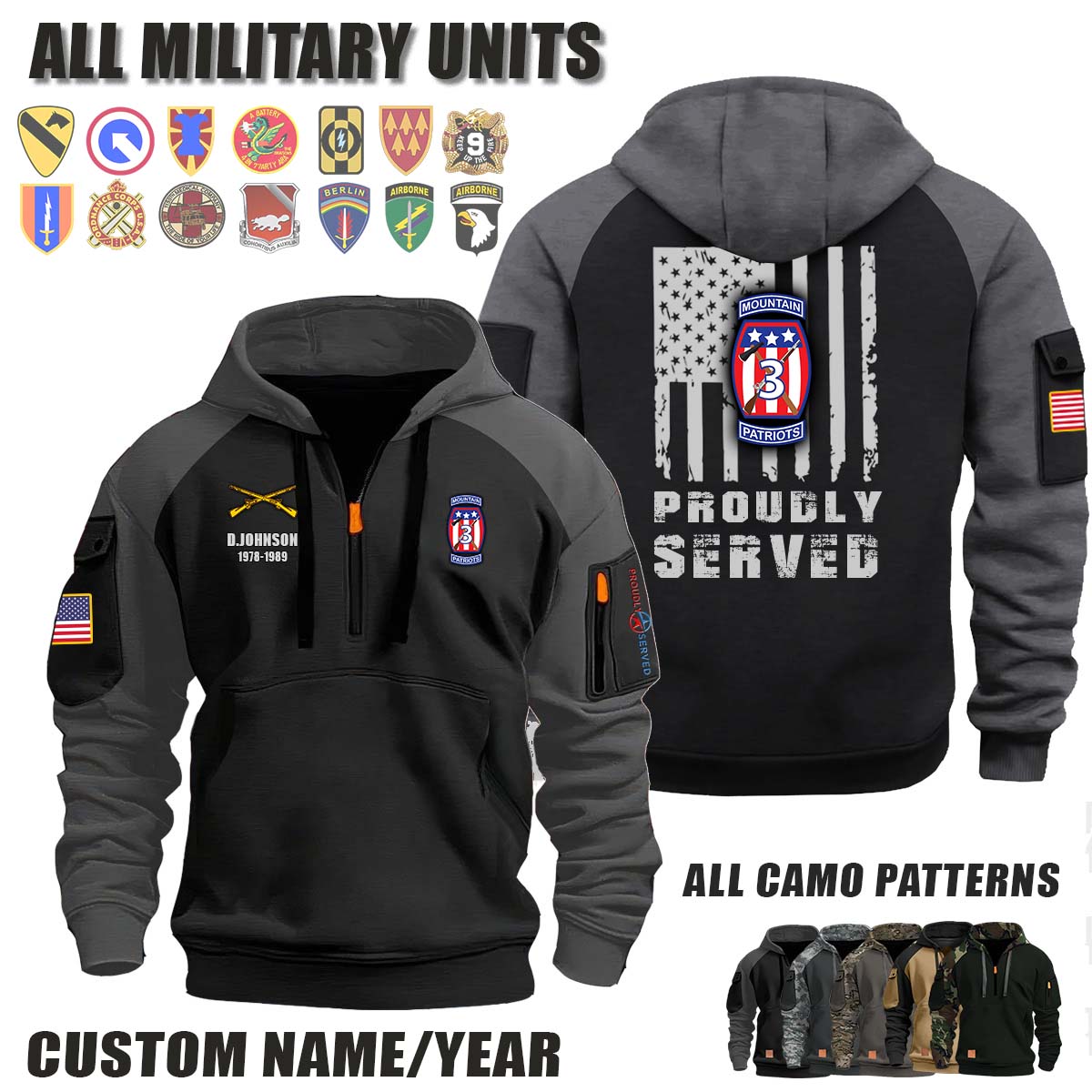 This 3rd BCT 3rd Brigade Combat Team_Camo Halfzip Hoodie lets you customize your Branch, Unit, Role, Rank, and Years Served — so your service, sacrifice, and pride live on.